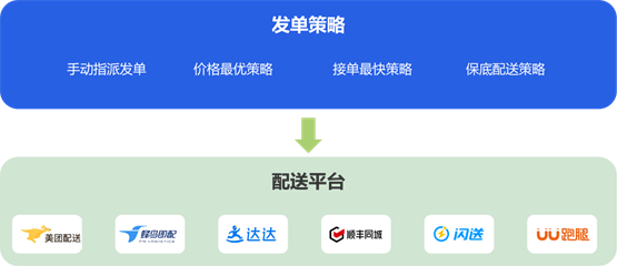 1、多配送平台发单 七点半零售支持手动指派发单、价格最优、速度最快、保底配送等发单策略,同时对接美团配送、蜂鸟即配、达达、顺丰同城、闪送、UU跑腿等配送平台。